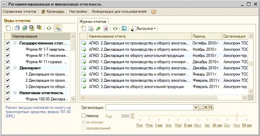 В конфигурацию «1С-Рейтинг: Алкомониторинг» включены следующие регламентированные отчеты: