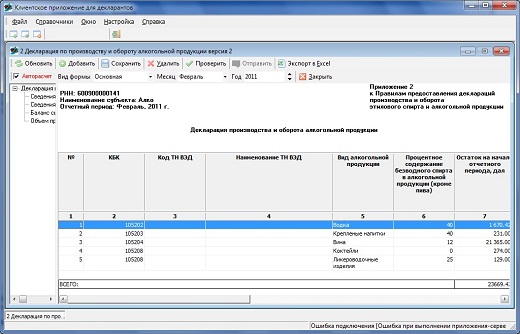 Если все данные об операциях производства и оборота этилового спирта и алкогольной продукции были внесены правильно, с учетом всех требований дополнения, то в конце отчетного периода для заполнения деклараций достаточно сформировать соответствующие отчеты.