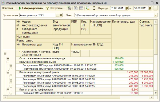 Декларации формируются в соответствии с Приказом министра финансов Республики Казахстан №461 от 17.09.2010 «Об утверждении Правил предоставления деклараций производства и оборота этилового спирта и алкогольной продукции».